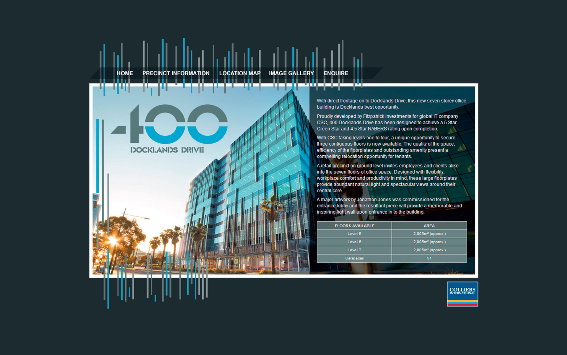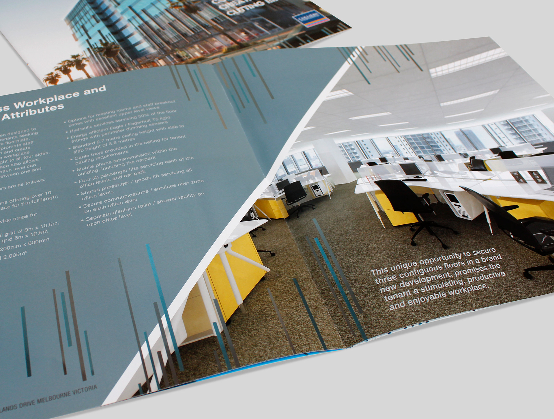 The leasing and marketing of 400 Docklands Drive Melbourne. To lease floors 5, 6 and 7 whilst still being built in Docklands' best opportunity. Brand identity with a metallic foil finish enhancing the design elements of this unique building. 'Connected. Creative. Cutting Edge.'