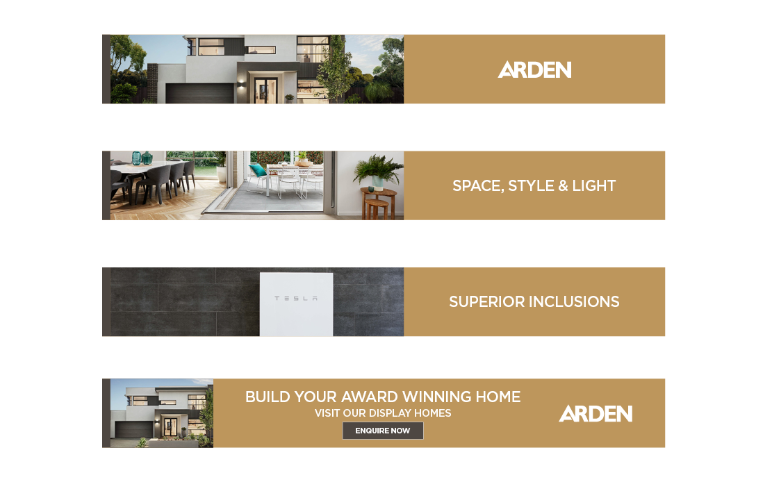 Using new creative highlighting Arden’s distinctive design and affordable luxury, the media plan included: • Google AdWords Search, Display and Remarketing. Both keyword and contextual targeting were used. • Facebook advertising targeted using Facebook’s audience breakdown of age, income, home ownership and recent searches. • MCN using location targeting, ads were served to those who were within the vicinity of Arden’s display homes and its competitors. • REA targeted based on users’ search on property within Victoria’s South Eastern suburbs, South Western suburbs and the Northern suburbs.
