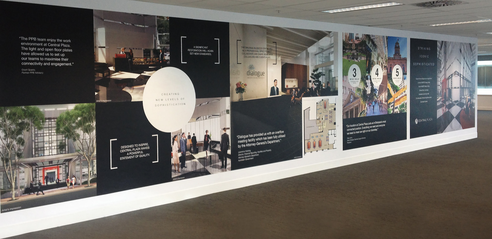 To lease office floors whilst still being renovated. 'Striking, Iconic, Sophisticated. Materials executed included information memorandum, microsite, window foyer display, wall displays, social assets and digital banners.