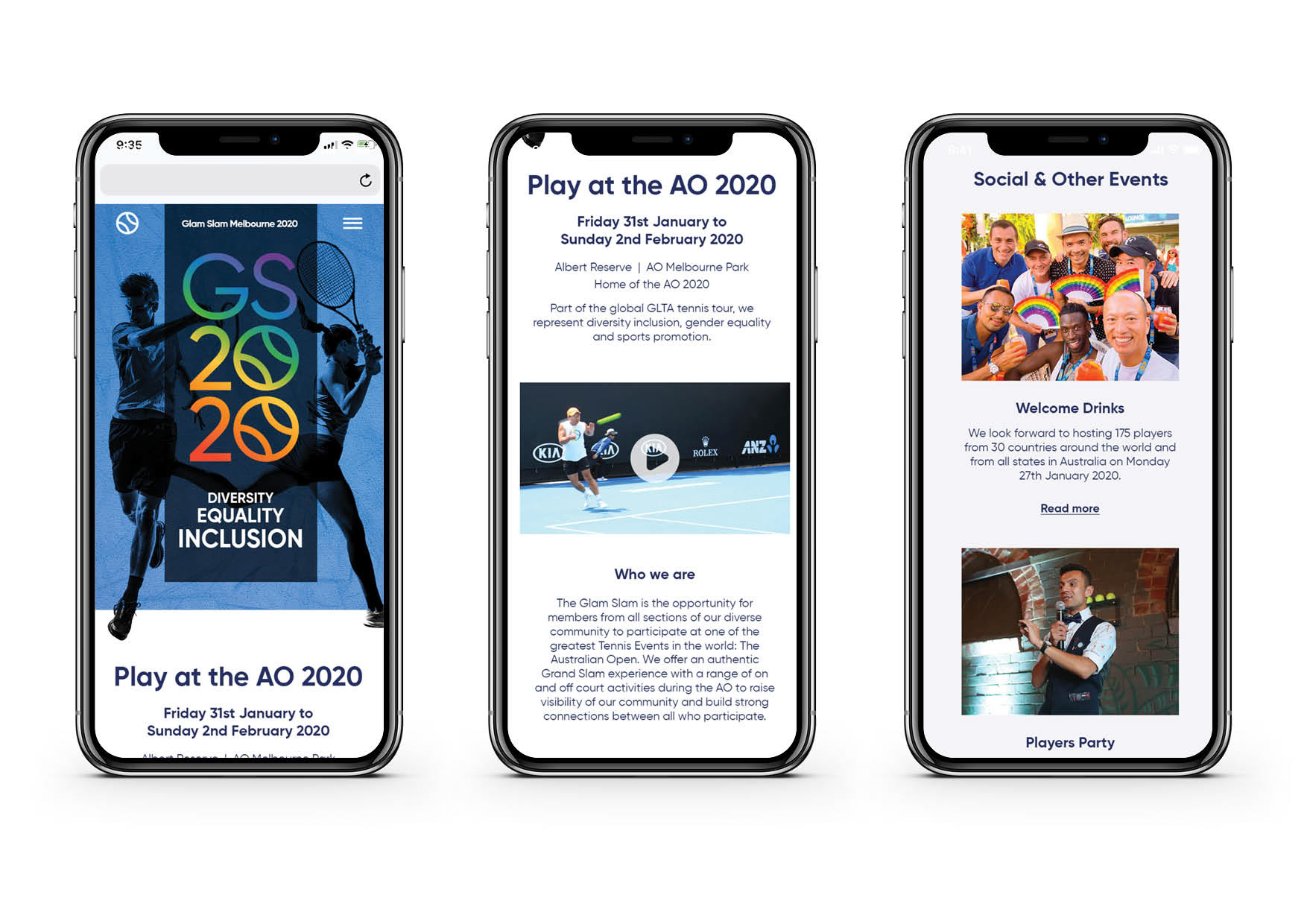 Client: VicTennis & Tennis Australia Project: Marketing of GlamSlam Melbourne 2020 (GS2020). Role: Volunteer Creative Director Description: A Diversity, Equality and Inclusion campaign and event for the LGBTQI community at the 2020 Australian Open. An authentic Grand Slam experience with a range of on and off court activities to raise visibility and build strong connections between all who participate. Working alongside Principle Supporters: Tennis Australia and the Victorian State Government through their Change Our Game organisation as well as Sponsors and Allies is indicative of the broad-based support and acceptance this event received. Glam Slam became the first LGBTQI event at a Grand Slam which has opened the conversation for the other Grand Slams (French Open, Wimbledon and US Open) to do the same.