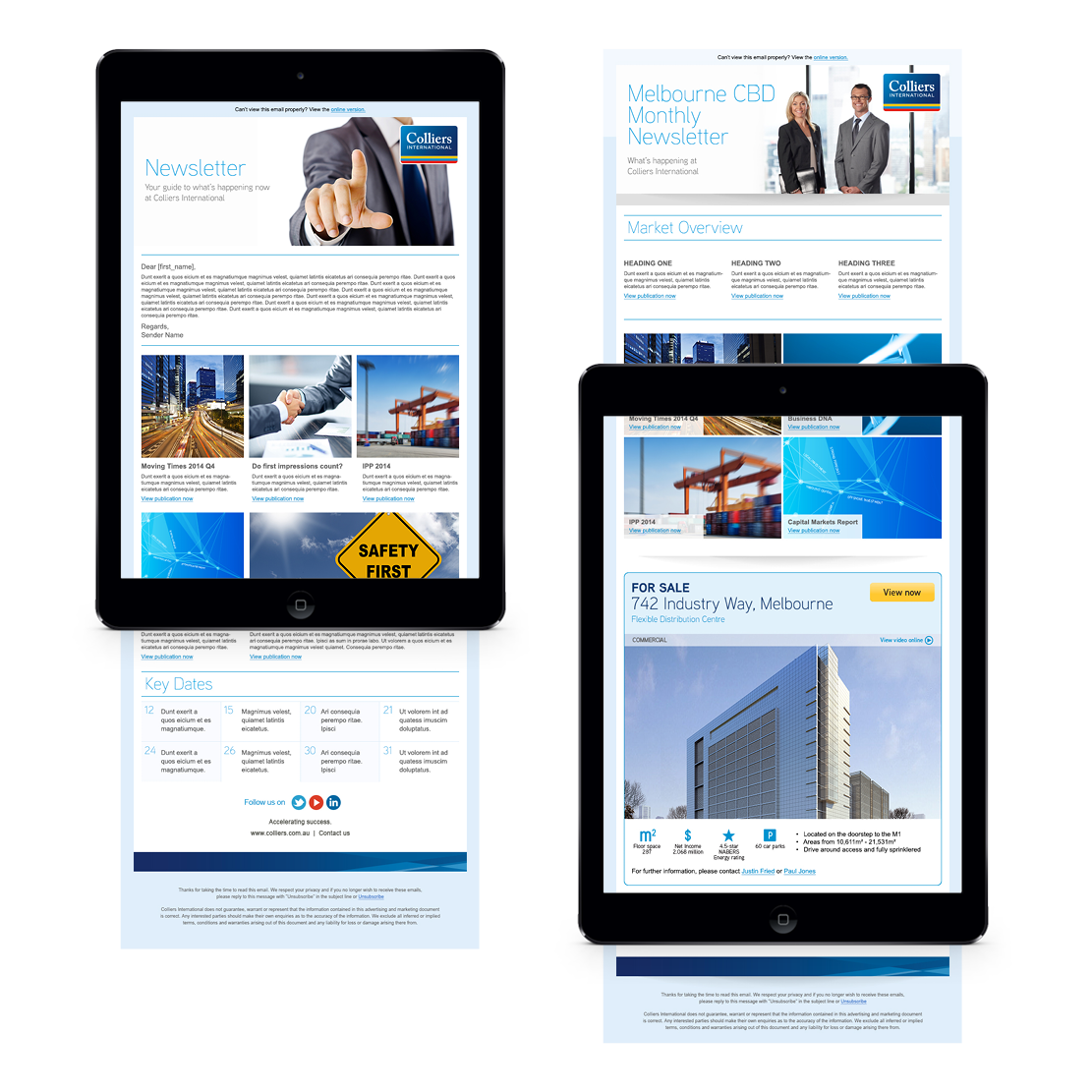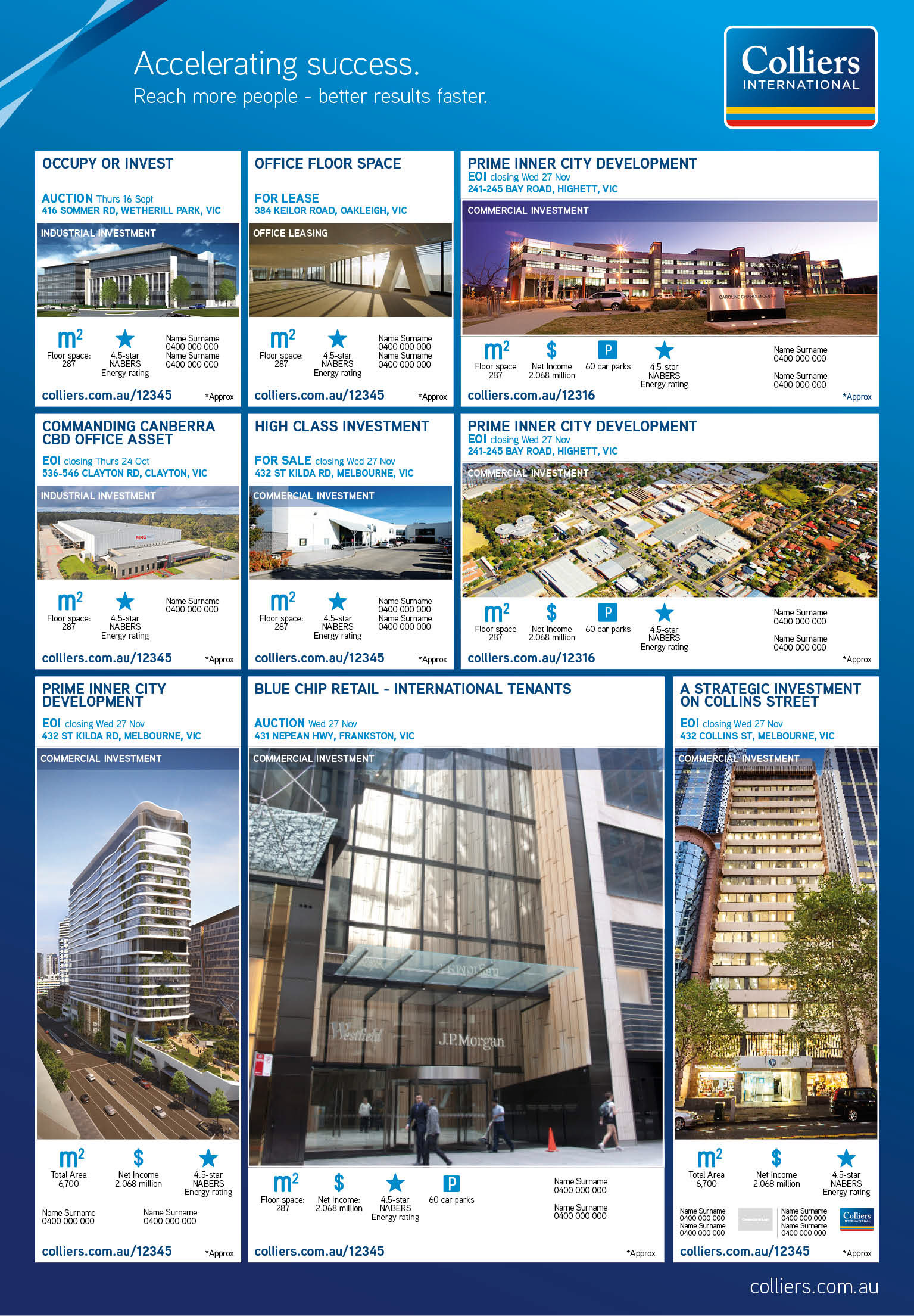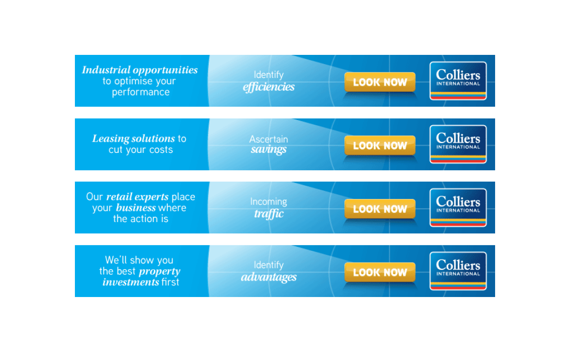 New national brand strategy for Colliers International to drive more traffic to their website and be recognised as a leader in the Australian property industry. The new designs of using iconography to simplify print ads and signage, right through to online, set the client apart from their competitors. The simplicity of this approach drove more traffic to their website and the client's competitors adapted this new approach within the industry.