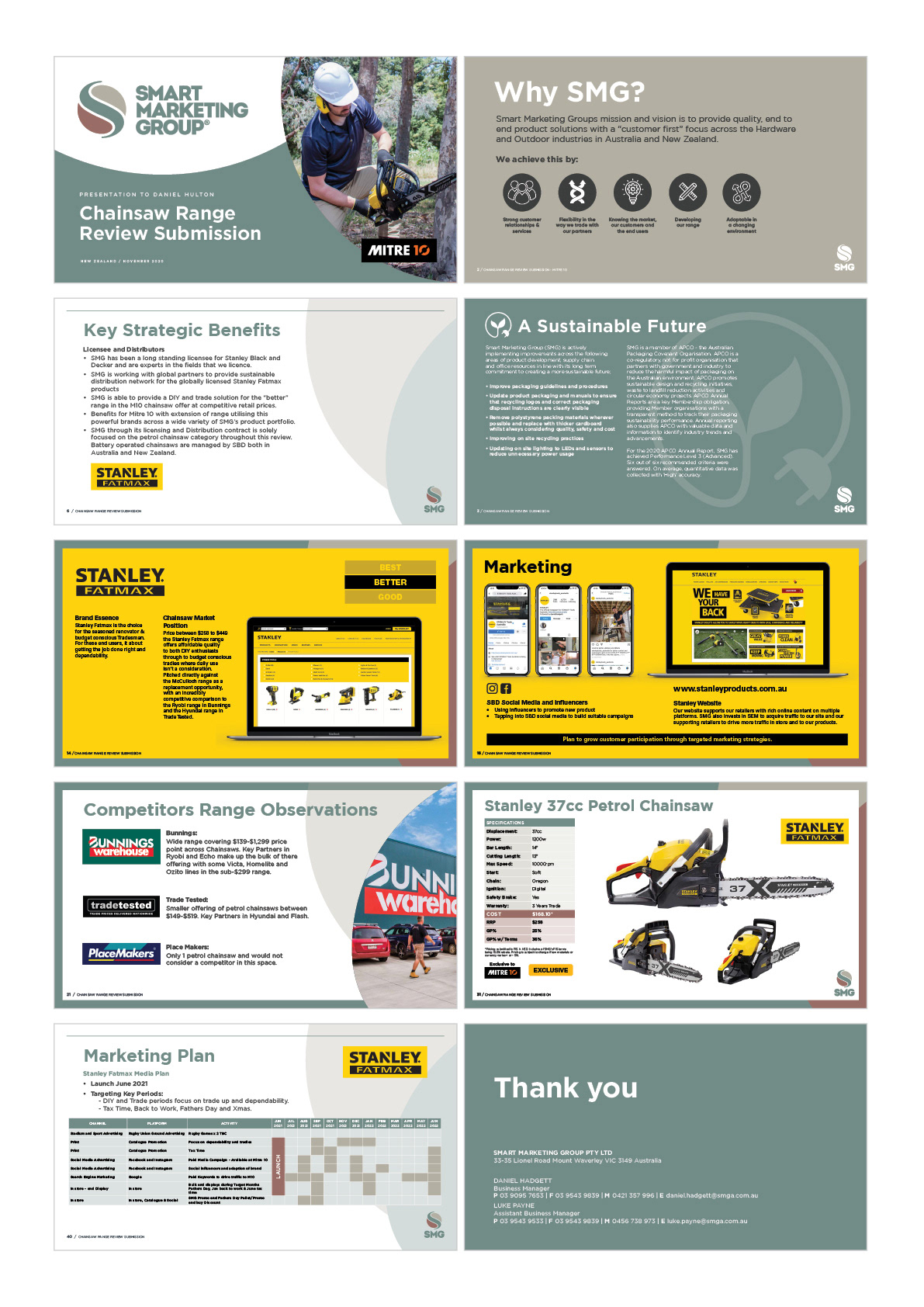 Client: Smart Marketing Group Project: Re-Brand. Description: Logo re-brand that has the ‘S’ in Smart Marketing Group. The brand represents Global, Australian & New Zealand Brands such as STANLEY, DeWALT, BLACKRIDGE, BLACK & DECKER and SILVERSTORM. The re-brand was rolled out across signage, print material and Powerpoint template presentations.
